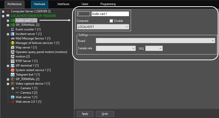 The Apply button is used to save the given object identification and setting parameters. The Undo button is used to return to the previous object identification and setting parameters.