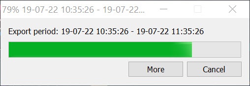 After you click the Export button, all elements of the utility configuration become inactive, and the bar of export progress is displayed at the bottom of the utility window. The percentage of export is displayed in the window title and next to each camera name.