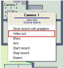 1. Press a command in the context menu of the object on the map. To do so, use the Video out box (Video in) in the context menu of the corresponding object on the map.