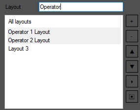 button. The layout is added to the list with the default name ("Layout <number>"). To rename the layout, select it in the list, then left-click its name and enter a new name.To delete a layout, select it and click the