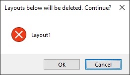 button, a window opens. This window confirms the deletion of the list of layouts. Click OK to delete the layouts or Cancel to cancel the operation.To move a layout up or down in the list, use the