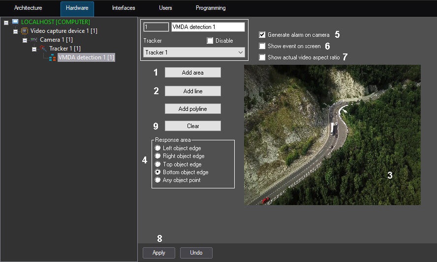 symbol. Available object types:Vehicle. Detector triggers when the line is crossed by an object which width is greater than height.