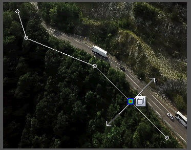 By default, the detection tool triggers on line crossing in both directions. Click the left mouse button upon one of the arrows to ignore crossing in one of the directions. The arrow will be colored gray.