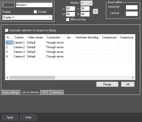 You can select several cameras at once and edit their parameters to display them in the Monitor window.