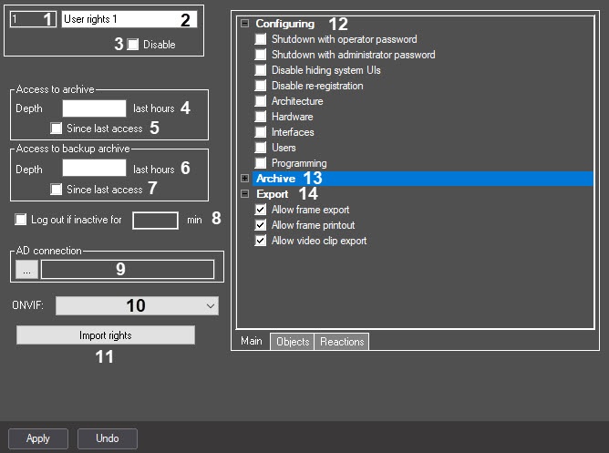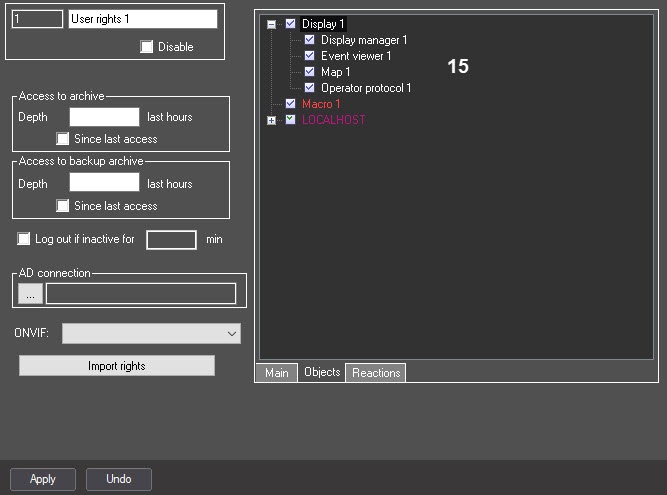 Matches the Axxon PSIM user rights with ONVIF rights according to the specification