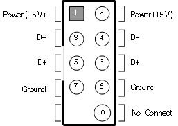 There is a special adapter in the delivery package if the SL USBIO 4x4 card is in use and the motherboard has an outsized USB connector or there is no connector for a loop contact. If you do not have the adapter, it is required to acquire one or route the loop leads by yourself taking into account the connector layout on the motherboard and USB connector layout on the SL USBIO 4x4 card (see the figure below):