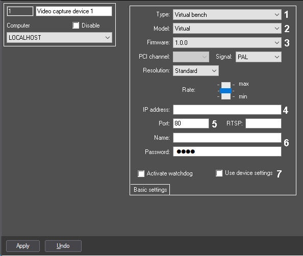 When the Video capture device objects are created, the following parameters must be set for every IP device:
