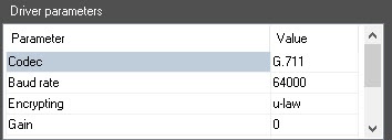 Moreover, driver parameters can be set in order to acquire audio from IP device. The list of available parameters depends on the device in use and it is shown in the Driver parameters table on the settings panel of the Microphone object.