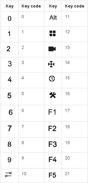 KEY_PRESSED | Key pressed | param0 | Code of pressed key | 0..21 |