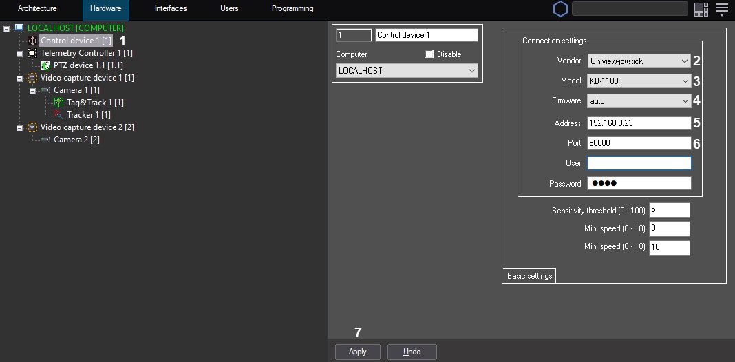 - Select Uniview-joystick from the Vendor dropdown list (2).