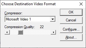 The Video button in the Export Setup dialog box opens a dialog box for choosing a video codec to be used for video compression.