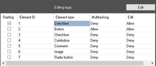 1. On the Logic tab, select in the table the required element and click the Edit button.