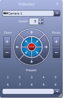 The Telemetry control panel is used to control PTZ (pan/tilt/zoom) devices connected to the system (for example, a PTZ device of a video camera).