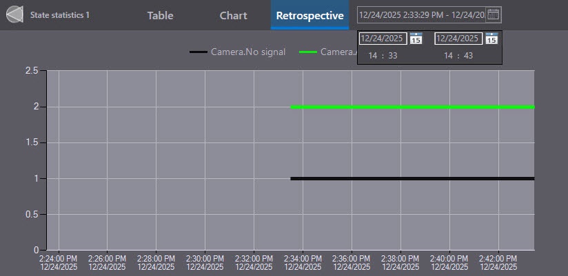 The selection of objects and the number of points on the chart are set during the system setup (see Selecting objects to include in State statistics and configuring pixel number).
