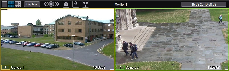 If Tag&Track is configured in Axxon PSIM (see Tag&Track configuration), then Video Surveillance Monitor allows tracking any selected object on video. Two Video Surveillance Windows are required for the use of Tag&Track, i.e. for stationary and PTZ camera (see Configuring video display on Video Surveillance Monitor).