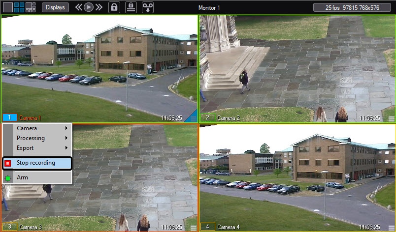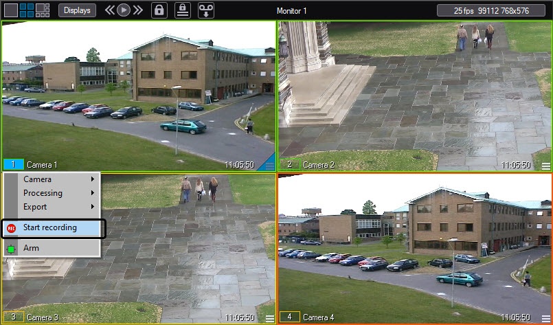 Recording may be forced by Operator command. To control recording, select the Start recording/Stop recording item from the functions menu of the video surveillance window.