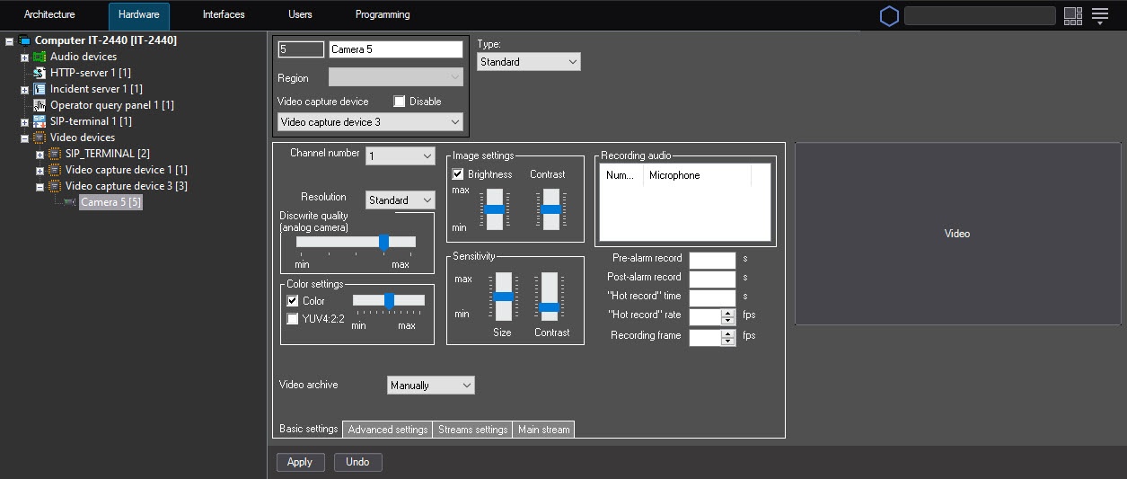 4. From the Video archive drop-down list, select the Manually value.