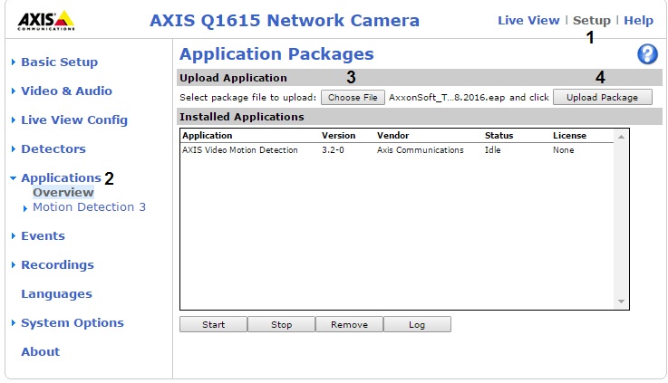 Register a license code along with camera's MAC address on Axis website in order to get the license file.