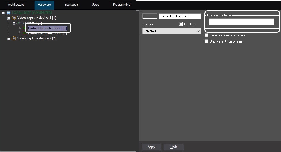 Configure this object in Axxon PSIM according to Configuring embedded detection.