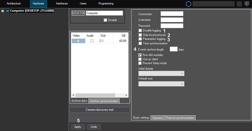 4. In the Events archive length field (4), specify the time period in days for storing the event archive in the event viewer database. This setting is relevant only for the server to which the configured Computer object corresponds.