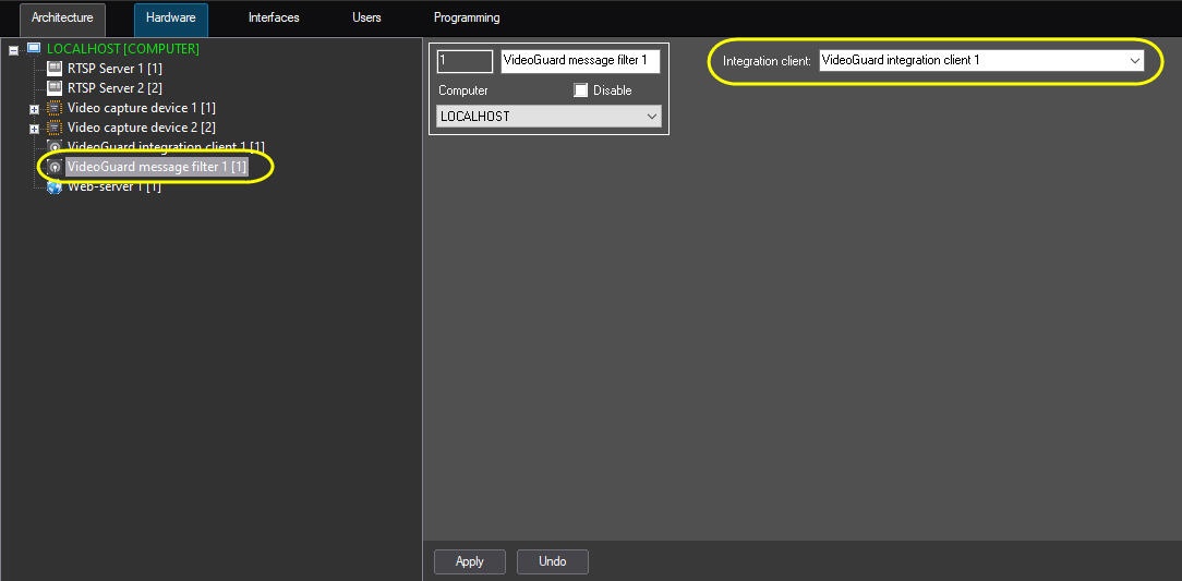 As a result, the VideoGuard message filter object is created that saves the events of the selected VideoGuard integration client when connection is lost.