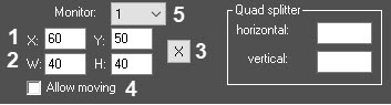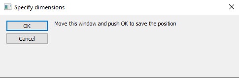 You may also set the interface window position and size with a template box. To do this, click X (3). The Specify dimensions box appears. Drag and resize it on the screen where the interface window should be, then click OK. The X, Y, W, H fields are automatically filled with values according to the Specify dimensions box position and size.
