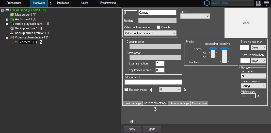 In the Axxon PSIM software the image from the video camera can be panned while displaying it on the Video surveillance monitor and viewing the video archive. Available rotation angles are 90, 180 and 270 degrees.