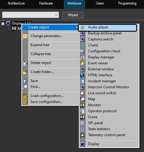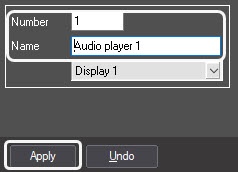 In the window, that will open, set the name and number of the object Audio player and then click Apply button.