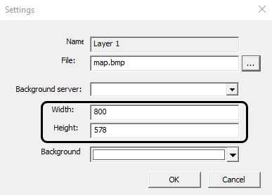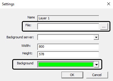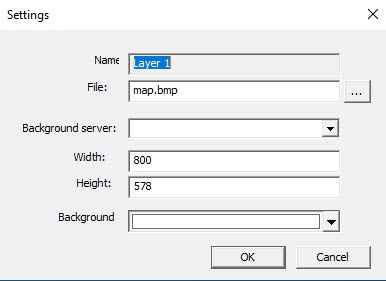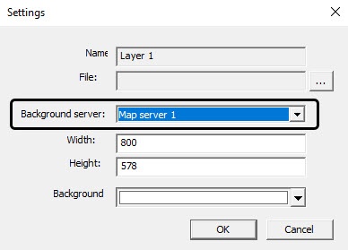 To select an external map as a background, select the previously created and configured Map server object from the Background server drop-down list (see Configuring the external Map server).