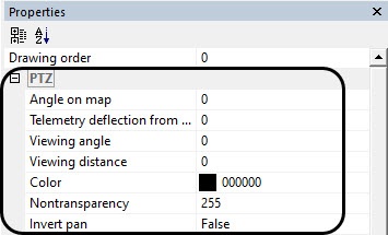 2. Open the Properties panel for the required object (see Editing object properties using the Properties panel) and expand the PTZ settings group.