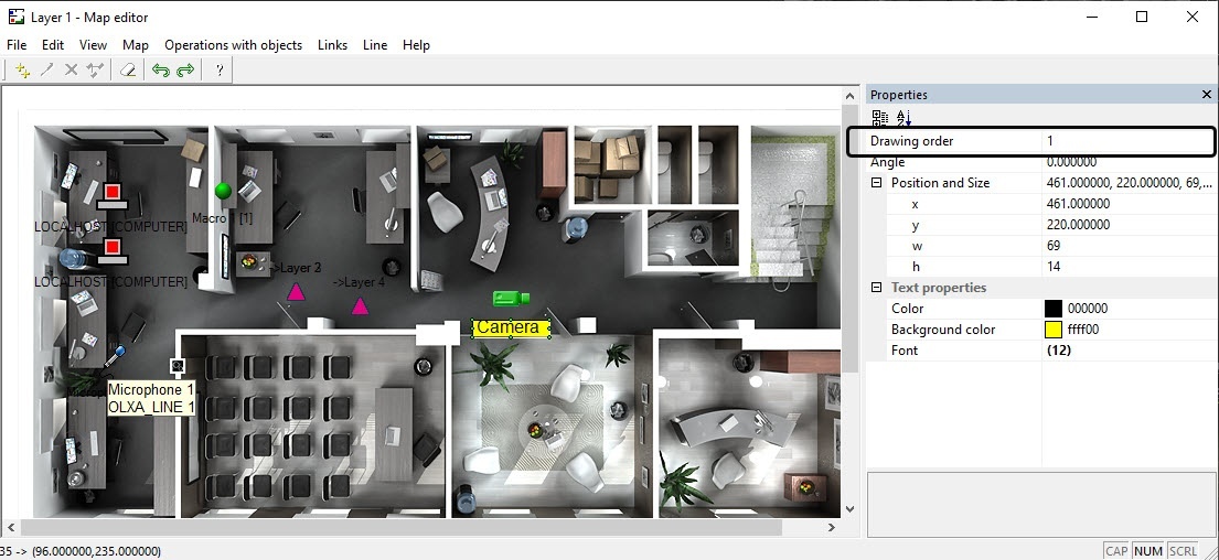 Setting the order of the objects' display on the map