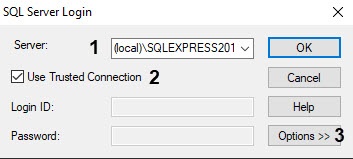 4. If you need to specify the login and password to authorize on the SQL Server, then set the Use Trusted Connection checkbox (2). As a result, the Login ID and Password fields are available for editing.