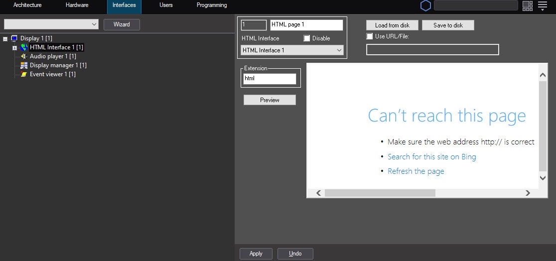 The HTML page object is created on the basis of the HTML Interface object on the Interfaces tab of the System settings dialog window.