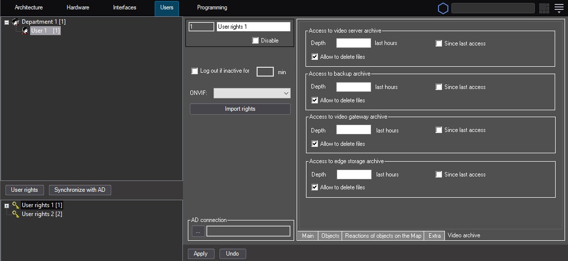 To prohibit the operator from deleting video archive files (from the video server, backup archive, videogate, edge storage), do the following: