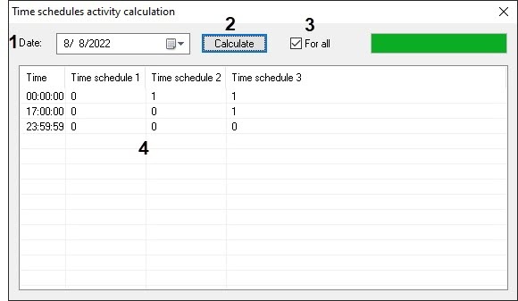 As a result, the table with active time schedules (marked 1) and inactive time schedules (marked 0) is created (4).