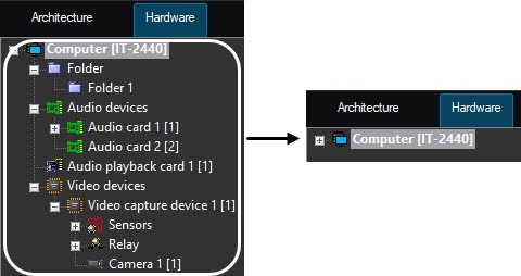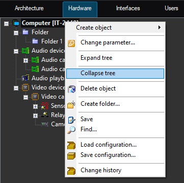 To collapse all branches of the objects tree, select the Collapse tree menu function while holding down the Shift key on the keyboard.