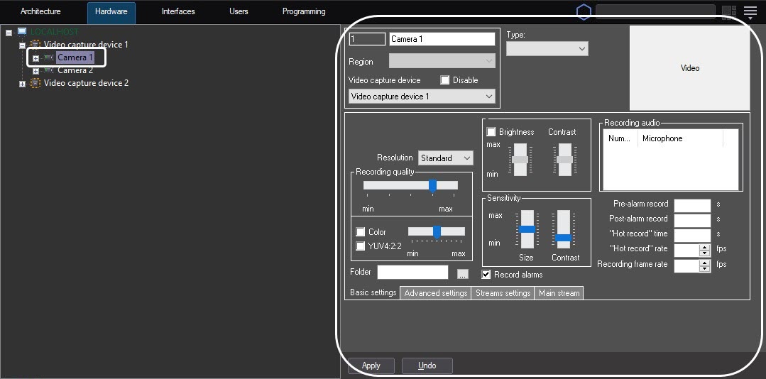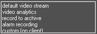 Information table | This table has automatically filled fields. Working with the table means activating the lines (columns) using the checkbox on the left side of the table. Text fields cannot be edited. The number of lines cannot be edited. Note. The table for selecting the hard disk for the archive storage is an exception. You can add new lines to this table when configuring recording to network disks. When you right-click any area of the information table, a separate extended window with this information table opens (see item 11 above). This window is intended to improve the process of working with small tables. In order to set all checkboxes in the column of the information table, select a cell in this column and press Ctrl+A. In order to clear all checkboxes in the column, select a cell and press Shift +A |