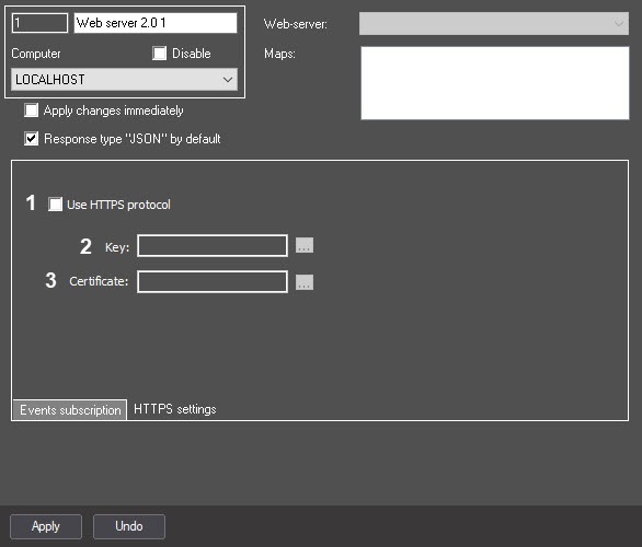 5 | The Web-server drop-down list | Select the value from the list | Sets the Web-server object whose settings must be used for the operation of the Web-server 2.0 | Names of the Web-server objects registered in the system | NA | Depends on the number of the Web-server objects registered in the system |