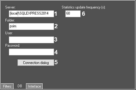 | 1 | The Server field | Enter the value in the field | Sets the name of the database server where the required database is stored | Latin alphabet, Cyrillic, digits, and service characters | Name of the server used by the system | Depends on the number of servers in the system |
