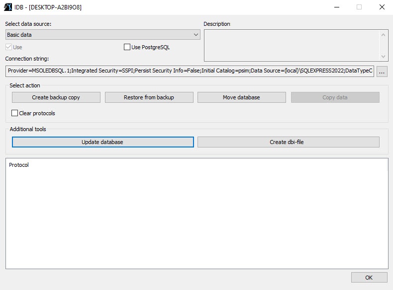 Right after you install Axxon PSIM, it is set to operate with the database of the MS SQL Server format that has the PSIM name.