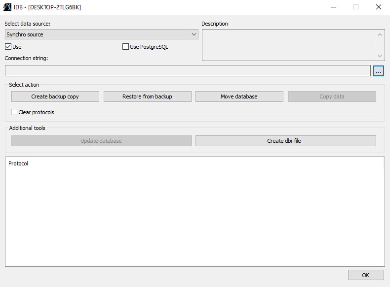 You must select a database at this step. If you leave the database field blank, then after you close the Data Link Properties window, the line "Database is not set in connection settings" appears in the database description window of the idb.exe utility, and the OK button to save changes becomes inactive.