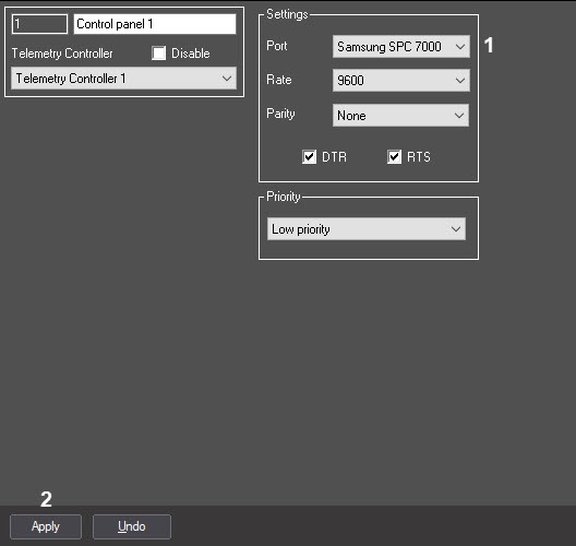 Configure Samsung SPC-7000 telemetry control panel in Axxon PSIM as follows: