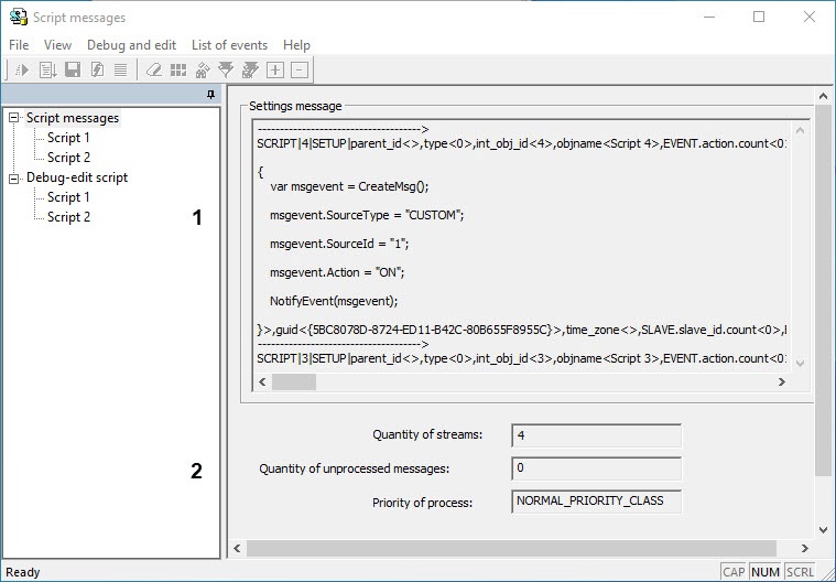 Description of the interface of the Script messages tab: