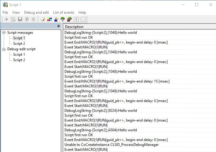 The Script messages tab is used to display the debugging windows of scripts.