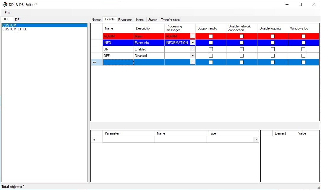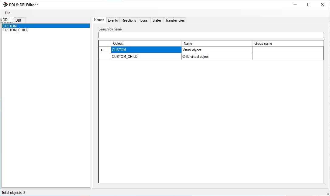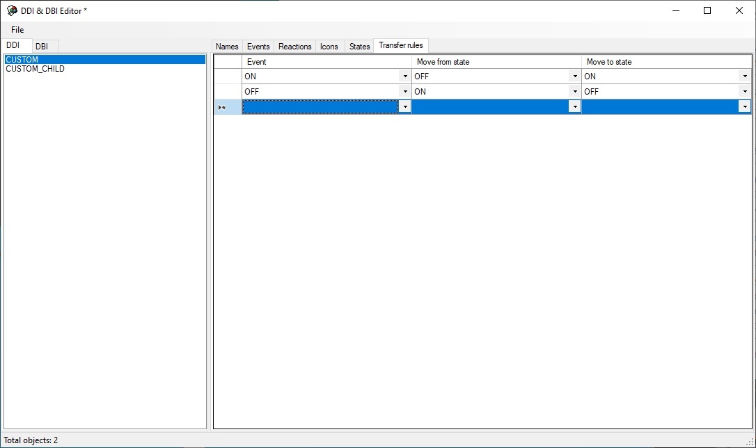 A DDI file for CUSTOM and CUSTOM_CHILD object types is created as follows: