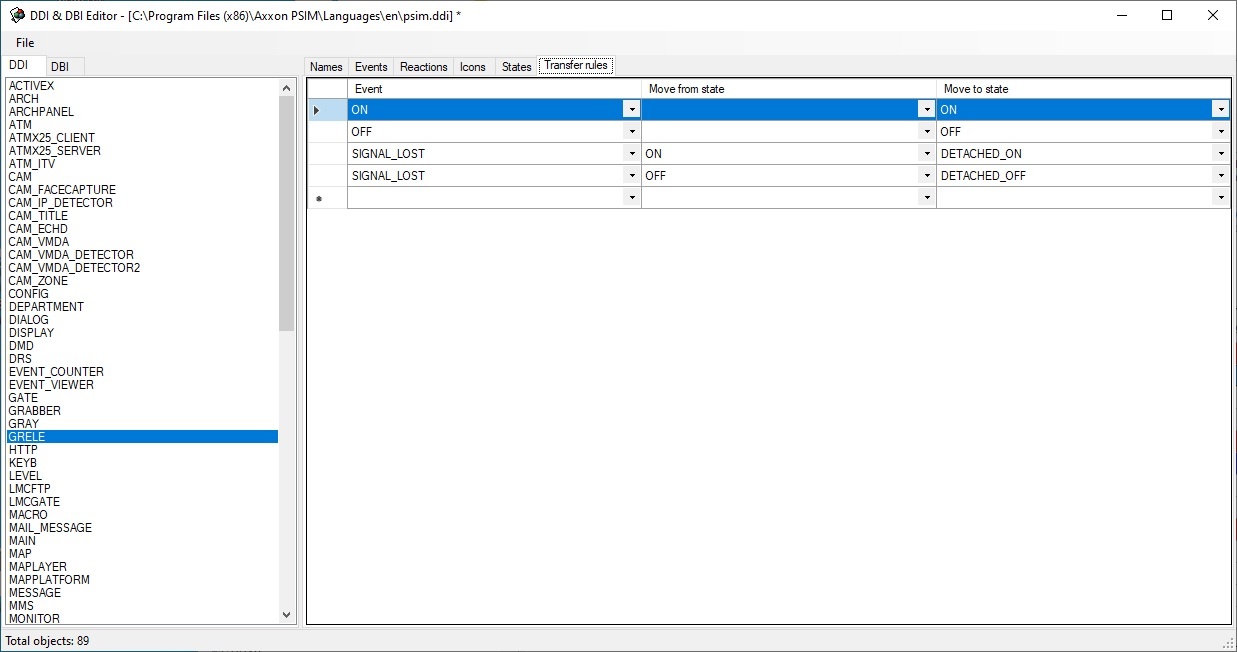 Transition rules connect the events generated by objects, and the states of these objects. Each rule consists of the starting state of the object, an event, and an ending state that the object will take after the event.