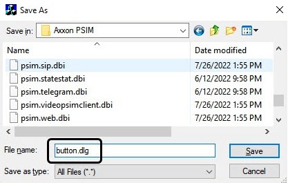 To get access to the saved window form file in Axxon PSIM, you must save it in the following folder <Path to Axxon PSIM installation directory>/Program.