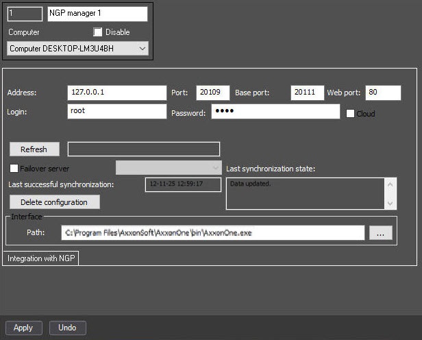 The Computer object must correspond to the Axxon PSIM server that is selected for integration.