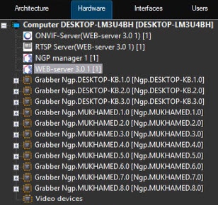 As a result, the NGP manager object is created. For the correct operation, you also need to create the Web server 3.0 object. The ONVIF Server (Web server 3.0) and RTSP Server (Web server 3.0) objects associated with the Web server 3.0 object are automatically created in the hardware tree. These objects are used to set up integration using the Axxon One web server. You don't need to delete or configure them; they must remain as they are.