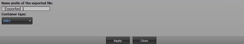 next to the list of cameras.In the window that opens, in the Container type field, select the container type (a file format containing a set of video and audio tracks, subtitles tracks, as well as other service information) for the exported file: avi or mkv.